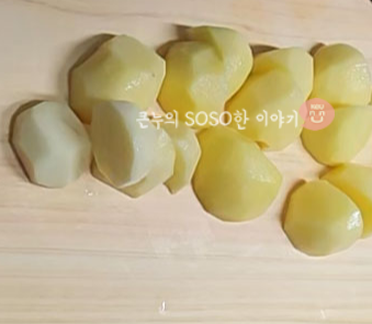 감자를 1/4 토막 또는 1/2로 잘라주세요.