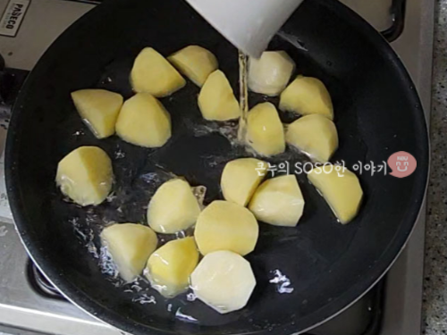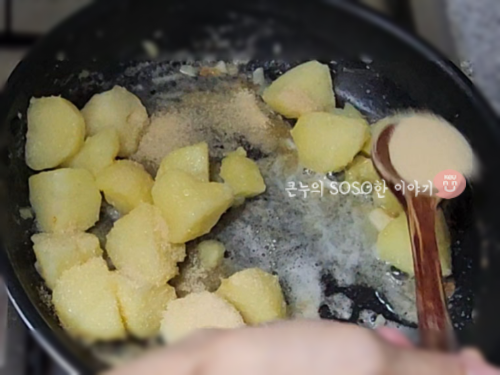 전 이번에 설탕이 녹을 때까지 안 기다리고 너무 자주 뒤집어줬더니 감자가 다 부서졌네요.