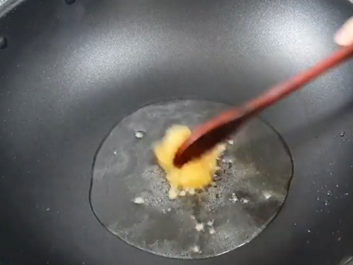 6. 프라이팬에 다진 마늘 1큰술, 식용유 2큰술 넣고 볶아줍니다.
