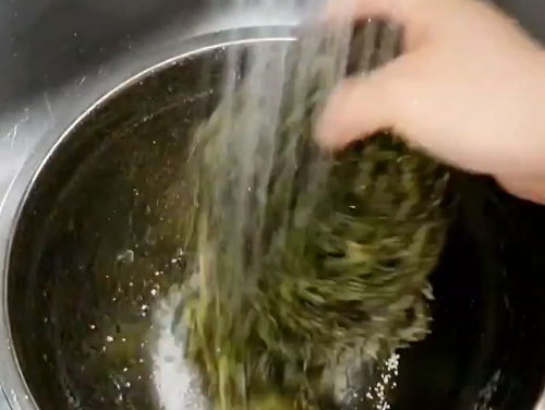 5. 살짝 삶은 미역줄기를 찬물로 헹궈서 열기를 식혀줍니다.