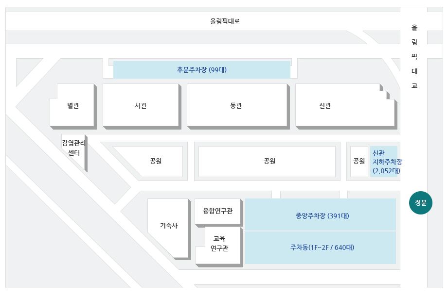 신관 지하 주차장(지하 1층~ 지하 5층) 2,052대