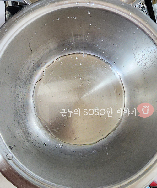 두꺼운 스텐냄비를 중불로 3~4분간 달궈줍니다.
