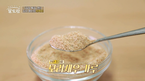 강순의 명인만의 비법인 보리 새우 가루 3큰술, 멸치 가루 3큰술을 넣어줍니다.