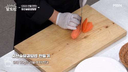 당근 20g을 가늘게 채 썰어줍니다. 죽순30g도 채썰어줍니다. 죽순은 빼셔도 상관없습니다.