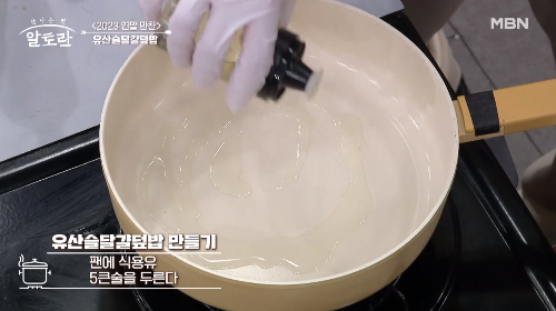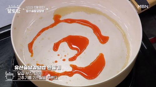 달걀 부친 팬에 고추기름 2큰술(아이들이 먹을때는 고추기름 대신 식용유를 넣어주세요)을 두른 뒤,