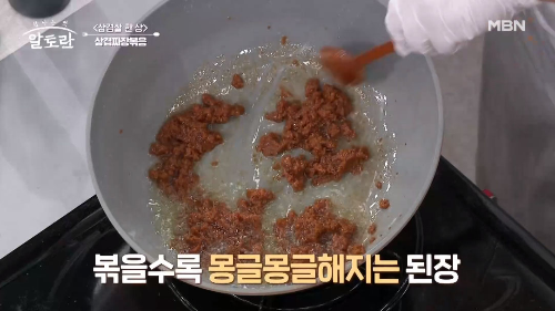 볶은 된장은 간을 보며 조금씩 추가합니다.