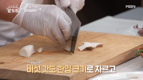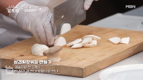 새송이 버섯을 얇게 썰어주면 수분이 쉽게 빠져나가 더 질겨 지게 되므로 도톰하게 썰어주세요
