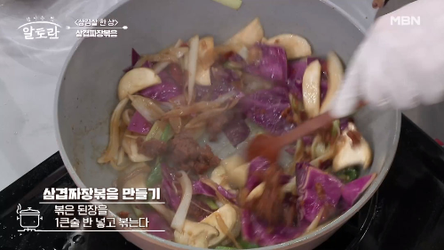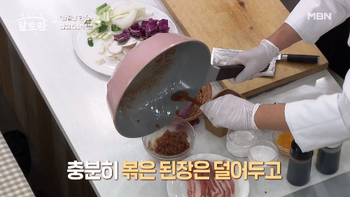 볶은 된장은 간을 보며 조금씩 추가합니다.