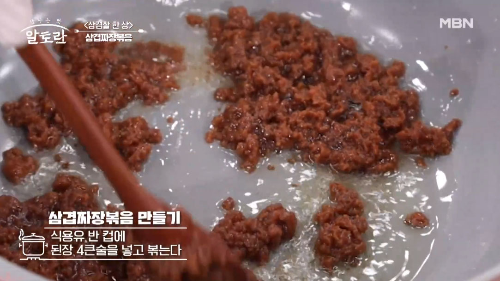 된장을 식용유에 튀기듯 볶아야 춘장의 깊은 맛을 낼수 있습니다.