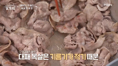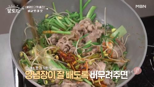 이홍운 셰프의 팁으로 고기를 먼저 볶아주면 채소의 아삭함을 살리고 고기의 쫄깃함을 살린다고 합니다.