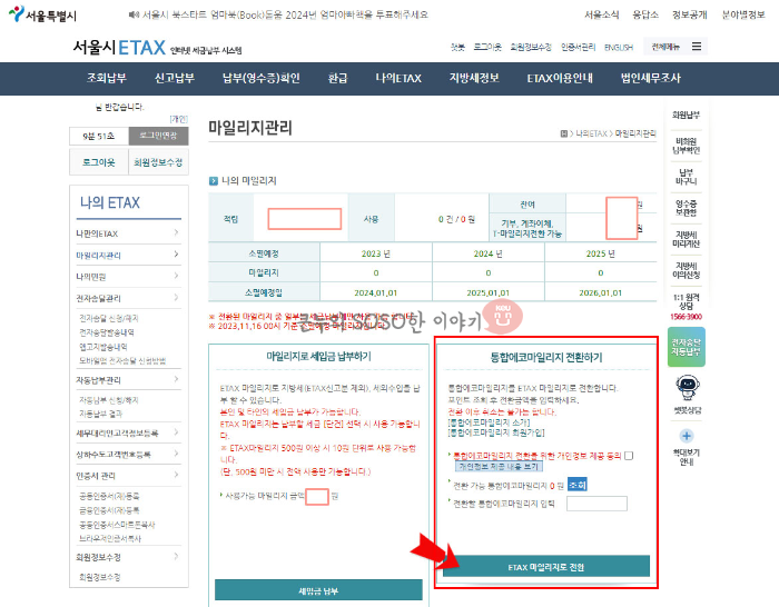 통합 에코마일리지로 서울시 이택스에서 현금으로 받을 수 방법을 알아보았습니다.