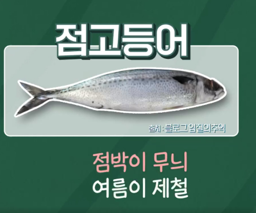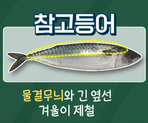 참고등어는 등쪽에 힘찬 물결 무늬와 긴 옆선이 있고, 점고등어는 등쪽에 점박이 무늬가 있습니다.