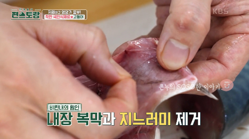 (복막과 지느러미를 제거해야 비린내가 덜 납니다.)