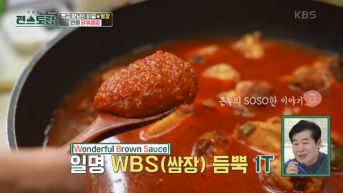 여기서 류수영 닭볶음탕의 비법 쌈장 1큰술을 듬뿍 넣고 강불로 끓여줍니다.