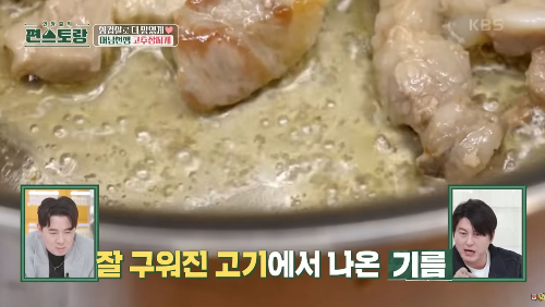 (냄비 바닥에 고기가 붙는 걸을 막기 위해 기름을 살짝 넣는 것이 포인트입니다.)