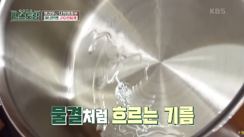 스텐 냄비에 불을 켜고 기름을 1바퀴만 둘러 주고 중불에 3분간 예열해주면 기름이 물결처럼 생깁니다.
