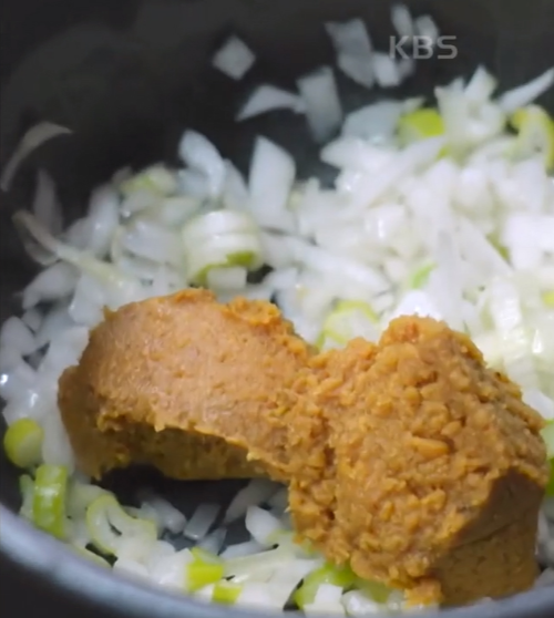 양파 향이 올라오면 된장 2큰술, 고추장 1큰술을 넣고 볶아줍니다.