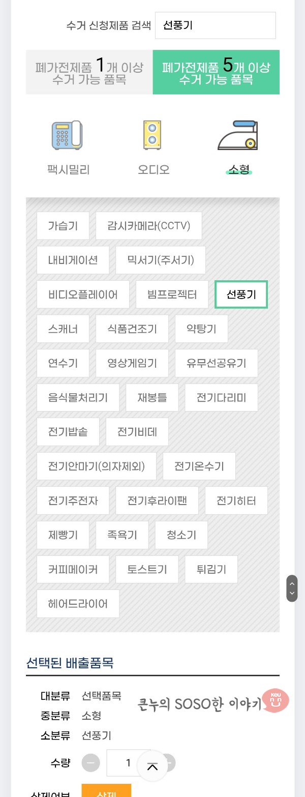 | 소형가전제품 5개 미만 요청시 | |