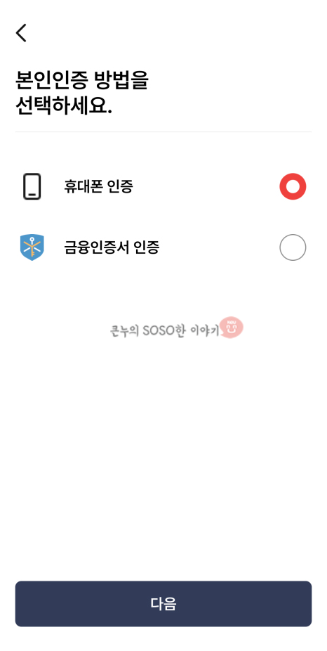 본인 인증은 휴대폰 인증, 금융인증서 인증이 가능합니다.