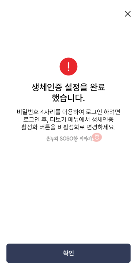 5. 비밀번호 설정하고 나면 생체인증 사용하기가 나옵니다.